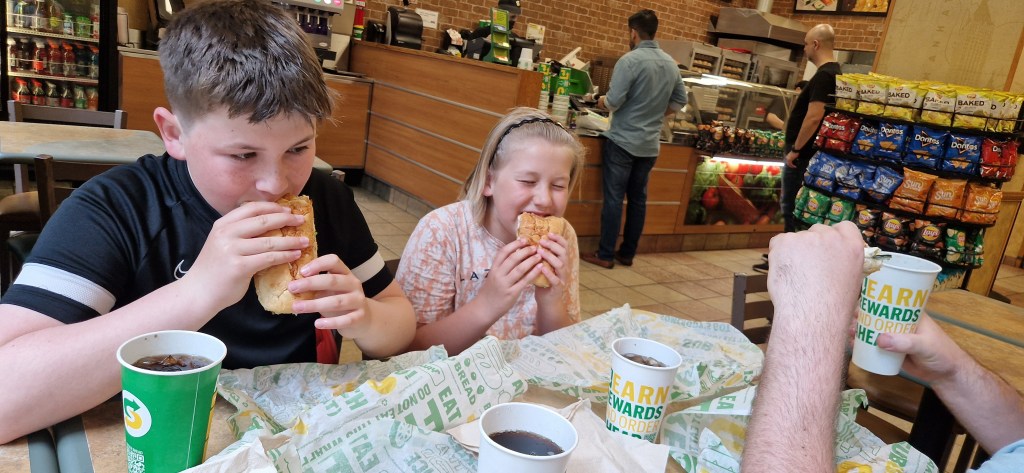 Maten vi spiste: Frokostblanding før vi trasket ut, Philly Cheese Steak på Subway (som var Lukas sin aller første subway-opplevelse!) Gigantisk softis, og Domino’s Pizza på rommet.