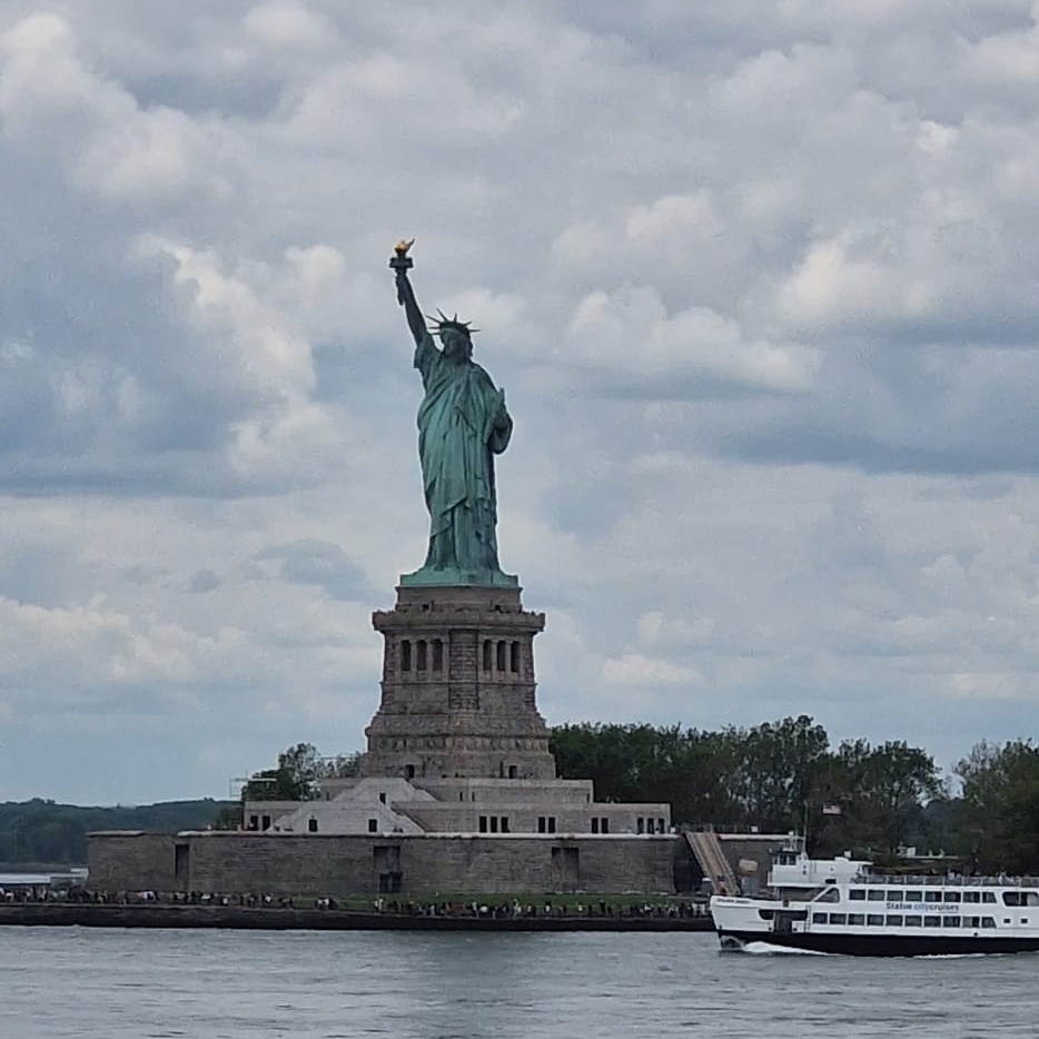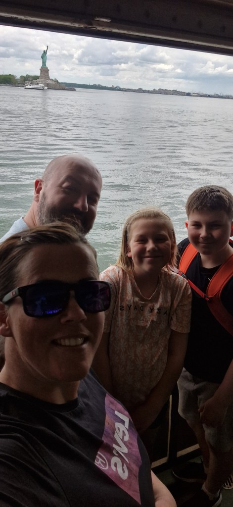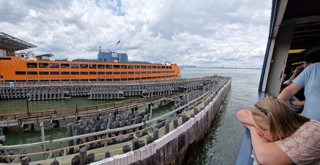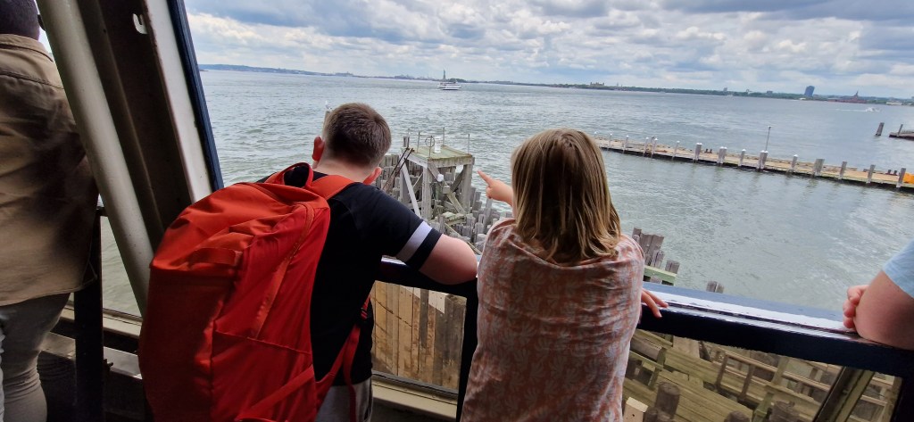 Vi reiste tur/retur med gratis ferje til Staten Island, som går forbi Statue of Liberty.