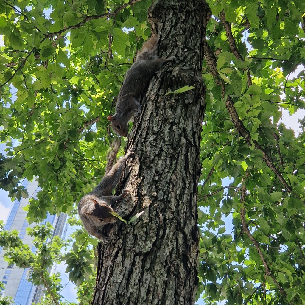 Har sett mange søte hunder på tur med eieren sin, og tre ekorn ved Ground Zero.