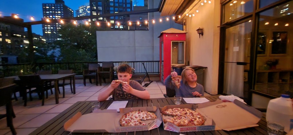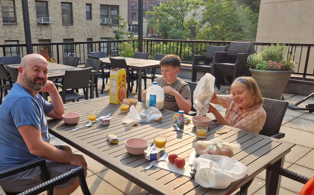 Lukas og Mia våknet latterlig tidlig (kl.5.45) og vekket hele New York med latter og putekrig. Deretter tok de tilsammen 75 situps og 150 squats mellom seg – alt før klokken var blitt 7..