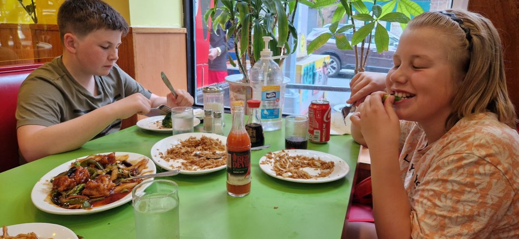 Lukas sa han var stolt av Mia som våget å prøve Red Devil Chayenne Pepper saus på den smakfulle restauranten Wo Hop.