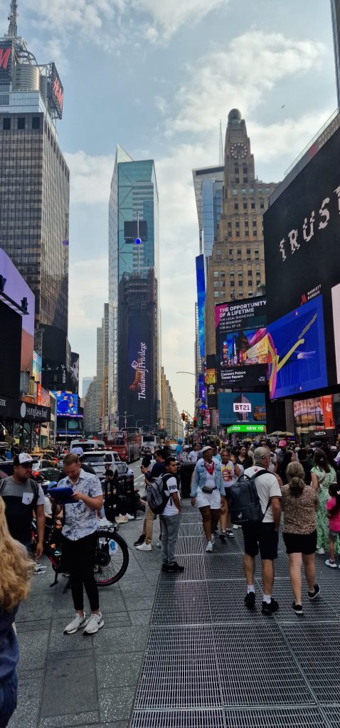 Slitsomt og mentalt utfordrende for enkelte av oss med veldig mange folk – både i Chinatown og Times Square.