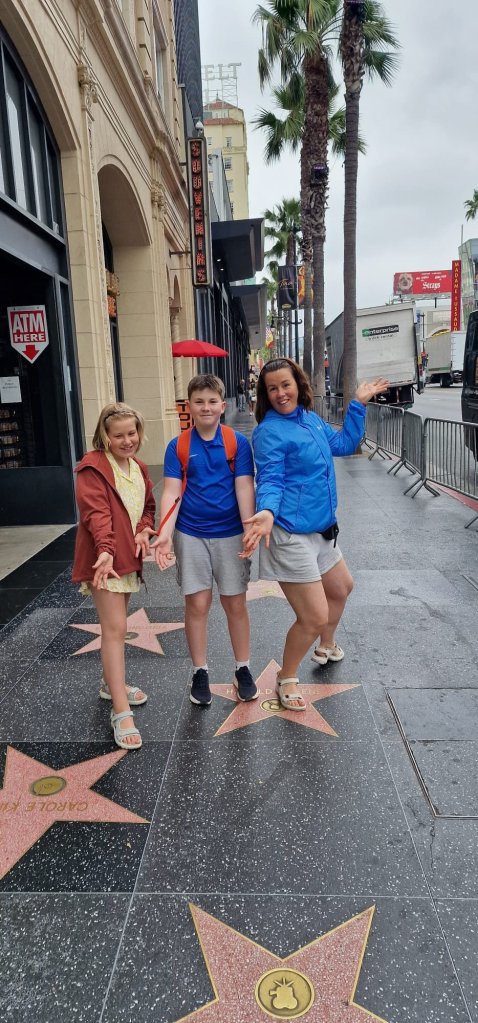 Vi sovnet på LA-tid kl.21.30, men våknet på NYC-tid kl.4 – altså 3 timer for tidlig… Derfor litt trøtte og trøttende i bilen hjem fra Hollywood, men med basseng, mat og drikke var formen fin igjen for alle.