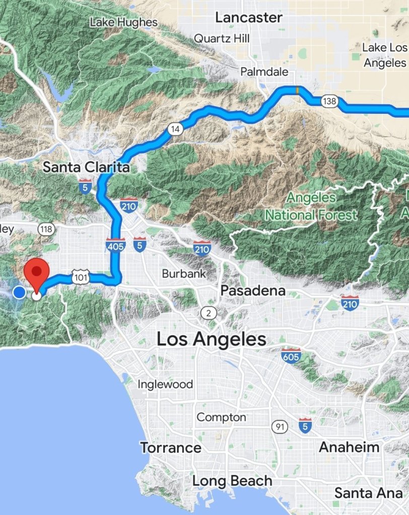 Vi bor i Calabasas, som også ligger høyt og ca 40 min utenfor sentrum.