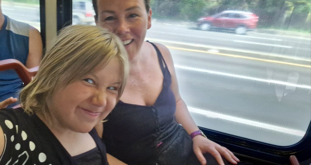 Vi startet dagen med busstur til Sea Life. Bussturen tok nesten én time. For å få tiden til å gå hadde Mia og mummy mimelek, imens Lukas og Daddy sov og tegnet.