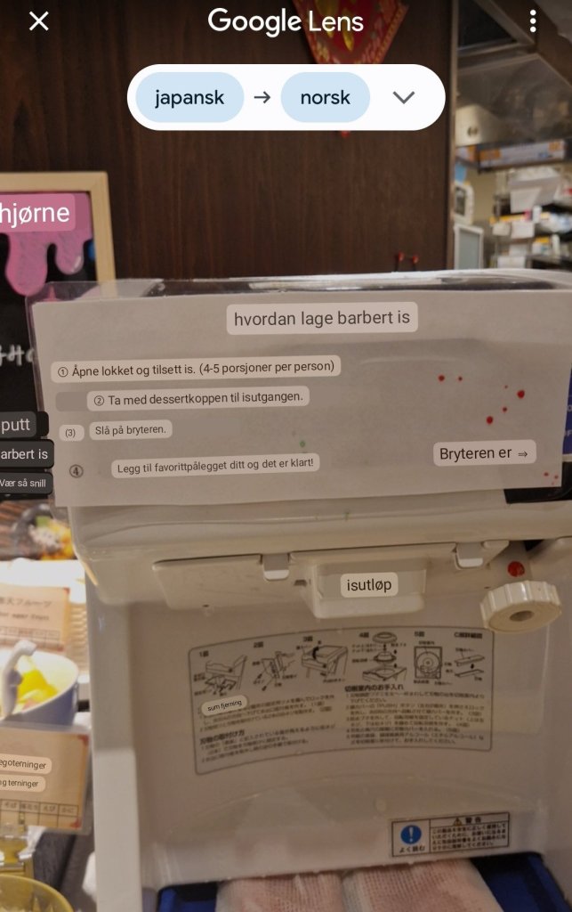 – Google Translator som forteller oss hva som står på menyen. Og Google maps som viser oss veien.
