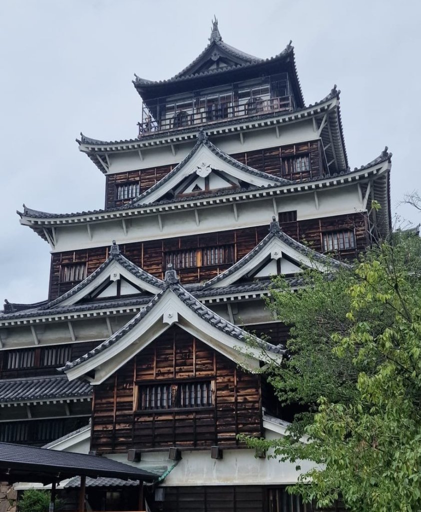 – Vi var innom Hiroshima Castle, som ble bygget i 1589 med en svær vollgrav rundt området, og ødelagt av bomben i 1945. Tretten år etter bomben ble slottet bygget opp igjen, og fungerer nå som museum for både dette og andre slott. Det var spennende å se utstilling av samurai-sverd, se bybildet slik det var i gamle dager før bomben, hvordan slottet ble bygget av motvillige bønder, osv.
