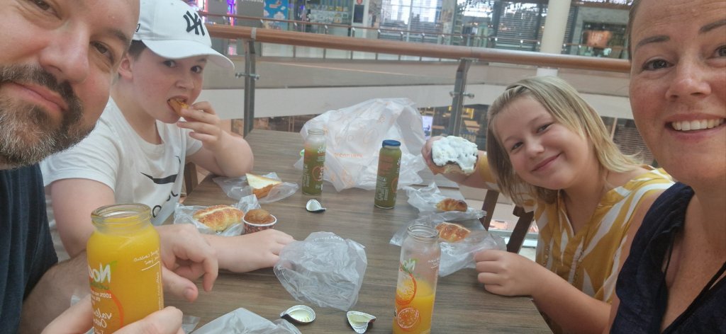 På senteret hadde vi god bakerifrokost, før ungene svettet fra seg i et lekeland en time, og foreldrene kikket i butikker og slappet av på café.