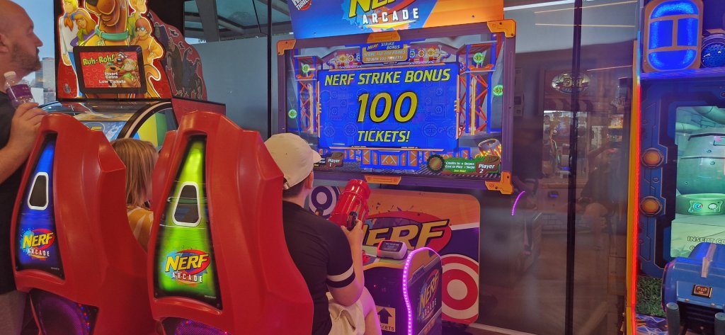 Arcades kostet også en del, men var sikkert verd det. Lukas vant jo en blinkende sprettball og Mia en sur snopepose..