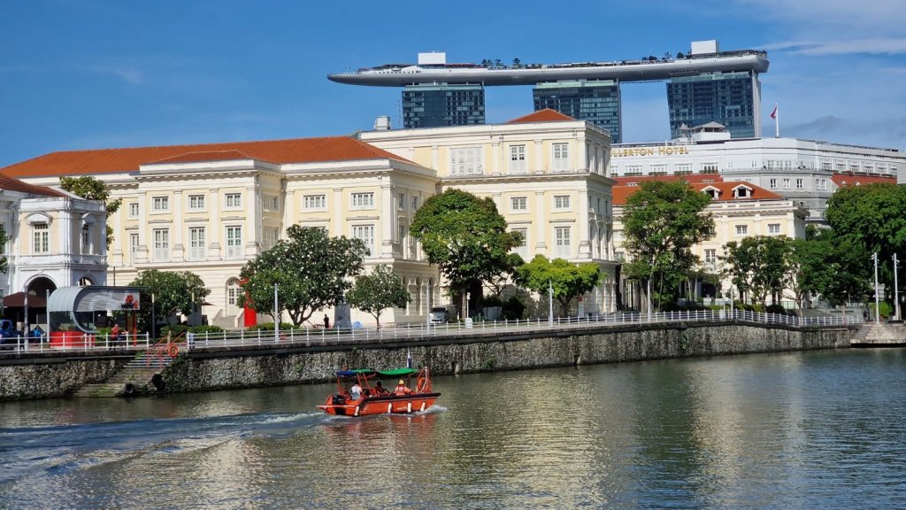 Videre tok vi metro ned til The Boat Quay, der vi så både flotte moderne bygg, og den opprinnelige downtown, og gikk gjennom den koselige restaurantgata som minnet om en strandpromenade på Mallorca, så en skilpadde i vannet, og ble invitert inn på mange spennende spisesteder.