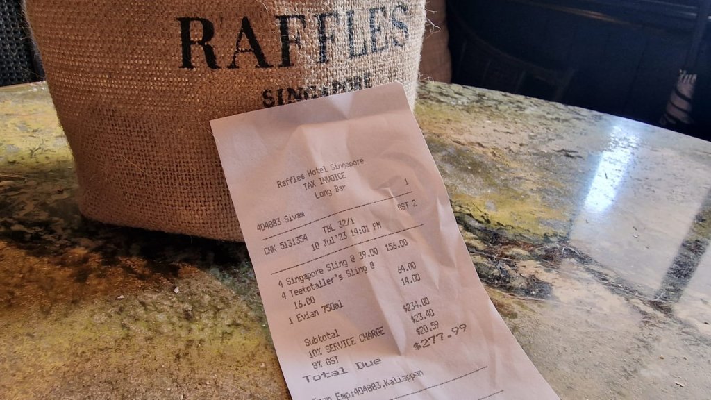 Singapore Sling kostet en fot og en arm…Men de var så enormt gode!!!