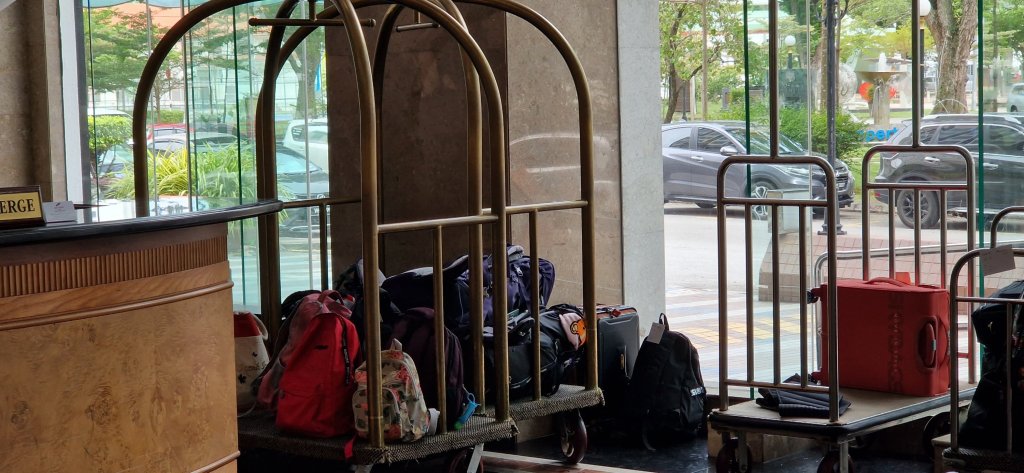 Det kom en person ut fra hotellet da vi gikk ut av Grab-taxien, tok bagasjen vår på en tralle og fraktet den opp til rommet! Som Mia sier: Kardashian-vibes!! Skikkelig høydepunkt 😅