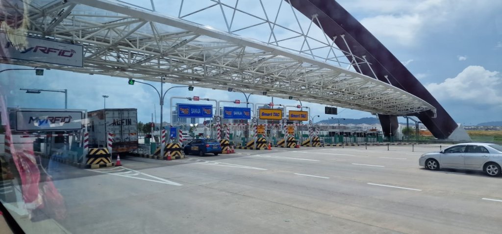 – Vi har lært at det er mange bomstasjoner her i Malaysia. De er ofte av den «gamle» typen, med tak og bod og bom som går opp og ned.