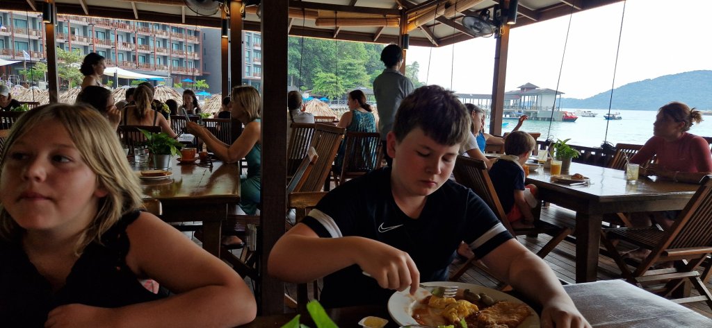 Lukas og Mummy ble litt sjøsyke på snorkelturen. Det løste vi ved å legge oss flatt på en av strendene imens de andre snorklet. Gikk fort over.