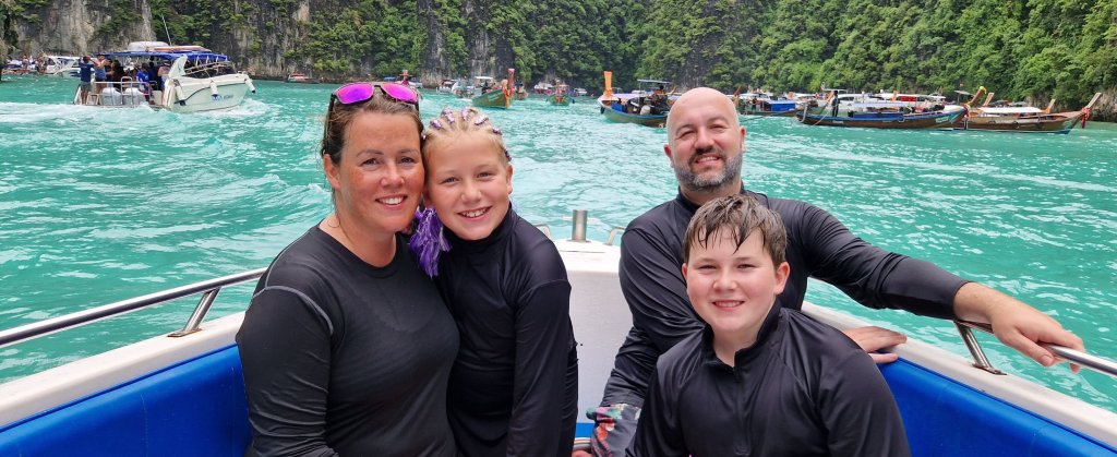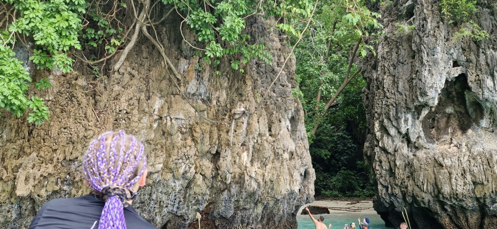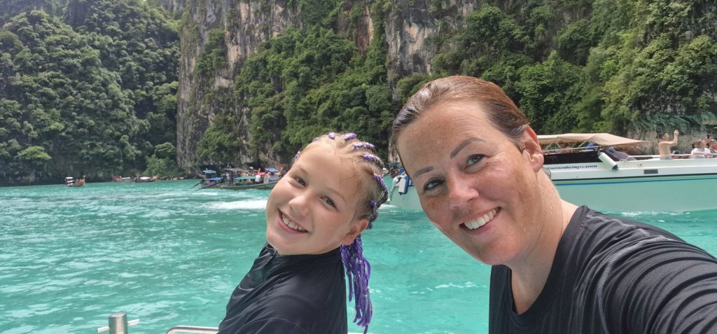 – Maya bay. Kjent strand på grunn av filmen «The Beach» som ble spilt inn her for mange år siden, med Leonardo DiCaprio. Her fikk vi oss plutselig en skikkelig regnskyll! Kjøpte også deilige maiskolber og nøt synet av lagunen, sammen med veldig mange andre.