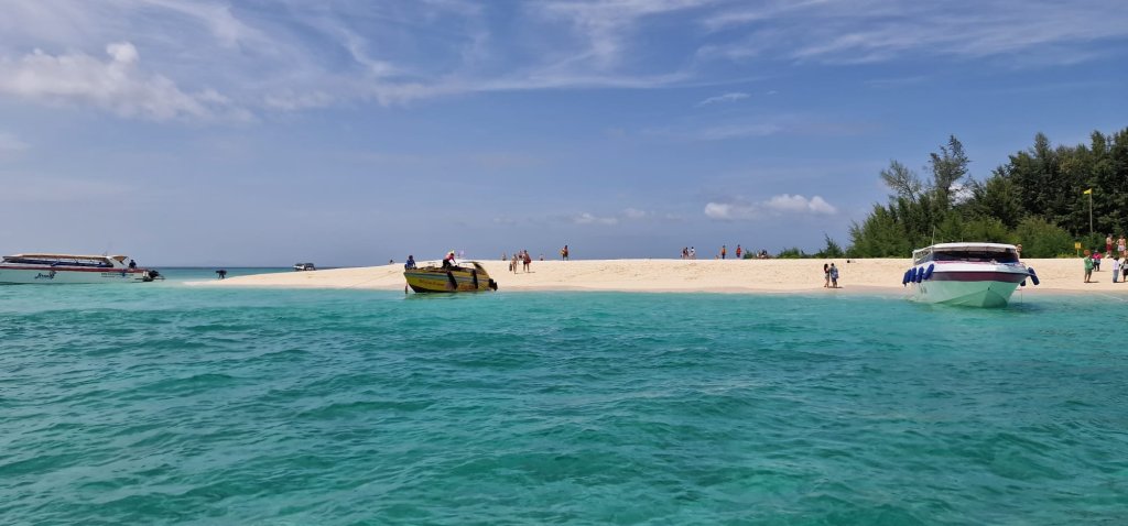 – Bamboo Island. Her stoppet vi, for litt snorkling ved en kritthvit strand. Sunnere koraller enn vi har sett til nå, og masse fargerik fisk!