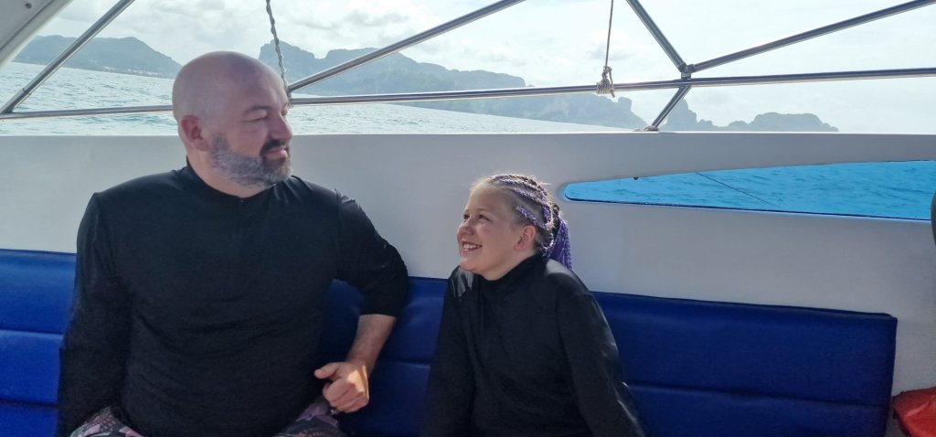 I dag leide vi en egen speed båt og to herlige kapteiner, som tok oss med på tur til Phi Phi Islands. Hele turen var på seks timer, og avstanden fra Krabi til Phi Phi var ca 50 minutt.