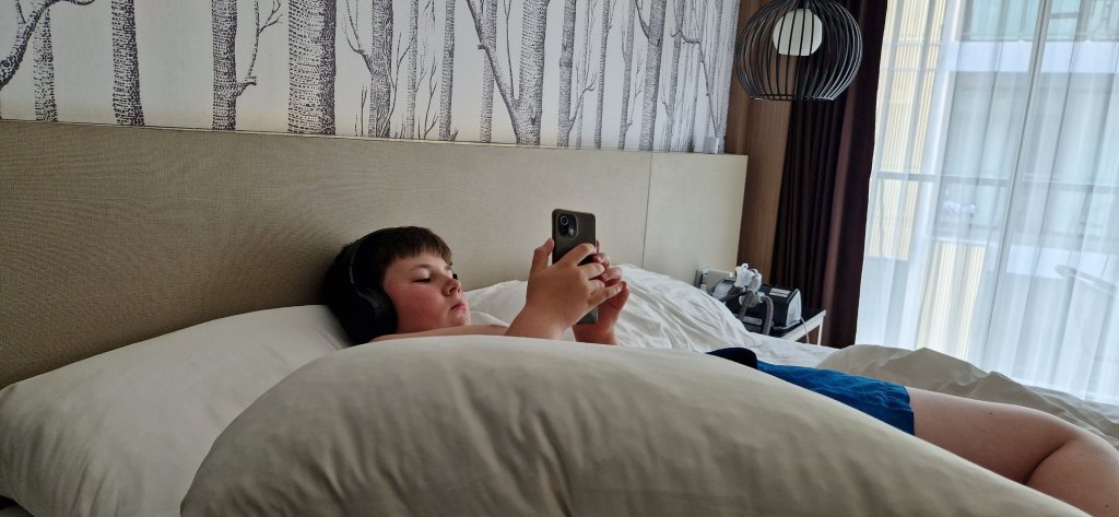 En vanlig følge av for mye skjermtid, er kort lunte. Det samme skjer når man kanskje er litt sulten selv om man ikke føler seg sulten. Kombiner disse to, så har du familien BB ca kl.17… Vi fikk heldigvis bestilt to små pizza i baren før krisen var et faktum, slik at vi kom oss ut til middag uten å rive hodene av hverandre..