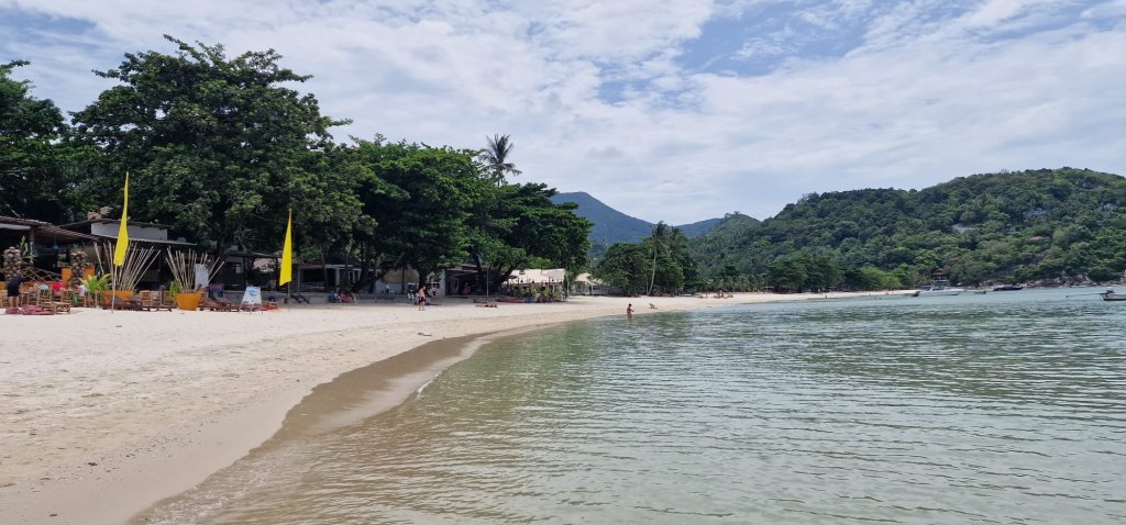 Herlig frokost på Pat&Da café mangs «hovedveien», ikke på stranden. Nydelig mat, men massevis av småfluer og maur der omkring. Imens vi ventet på maten løp Hanne på butikken og handlet to typer myggspray. Det hjalp en del.