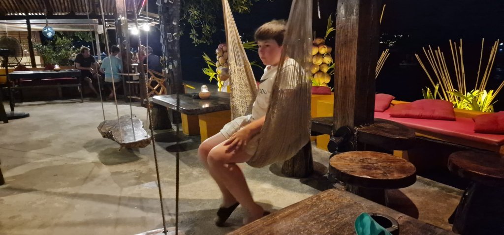 Etter mer bading, Roblox og solseng var det blitt kveld, og vi gikk til nabobaren til venstre. Denne var skikkelig stilig!