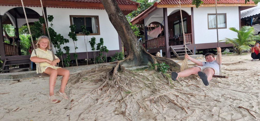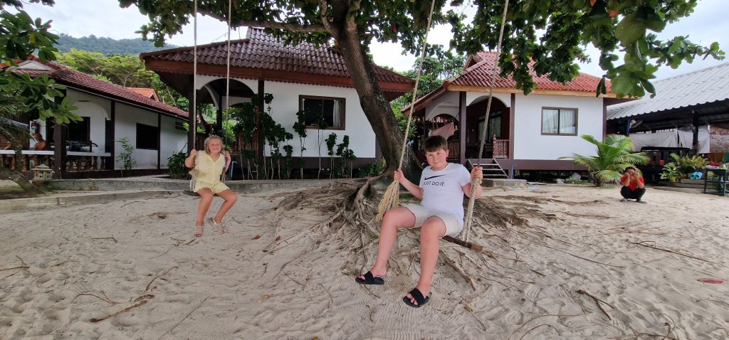 Etter frokost var det mer bading og solseng-liv, og når ungene skulle ha pause fra solen spilte de Roblox sammen på rommet.