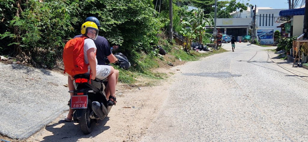 På vei hjem fra Haad Rin, i bunn av en bratt bakke, så vi en ødelagt scooter som nettopp hadde kræsjet. Da vi kjørte forbi så Mia en stor blodpøl like ved. Trist og et veldig skremmende syn… En mann vinket oss forbi, og en politibil ankom like etter.