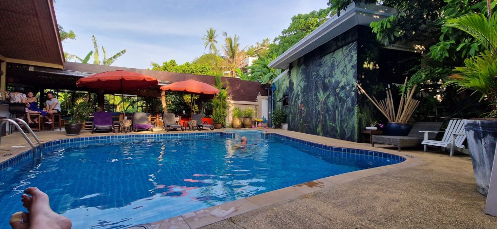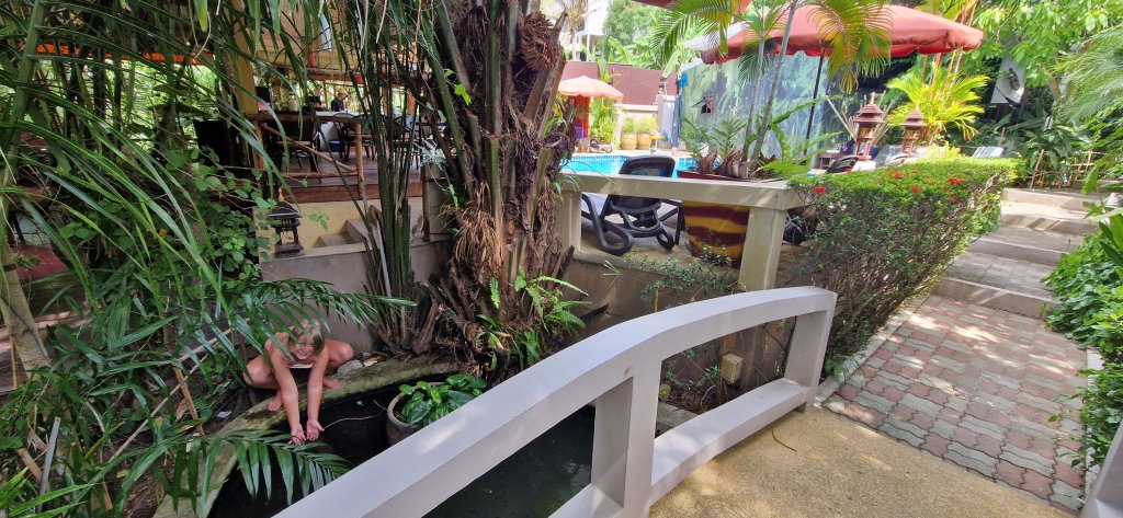 Vi ankom hotellet Baan Sukreep Resort og ble med én gang slått i bakken av hvor MAGISK denne oasen er, midt i jungelen, lite og koselig, zenhage-følelse, med små fish spa fisker i dammen, happy hour og deilig, rent basseng.