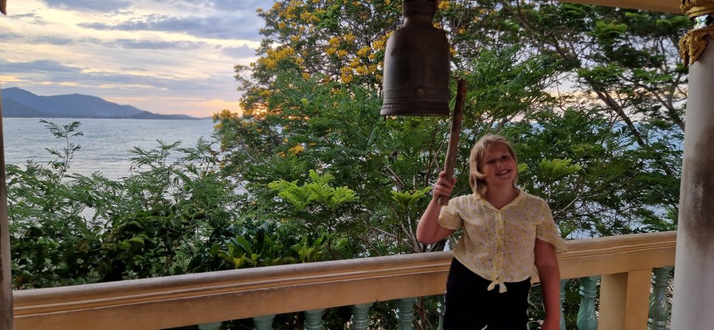 Kl.18.15 kom vi endelig frem til Buddha! Hurra! 15 minutt før stengetid. Fikk en rolig tur opp trappene, kun noen få andre tilstede, og så også den vakre solnedgangen.