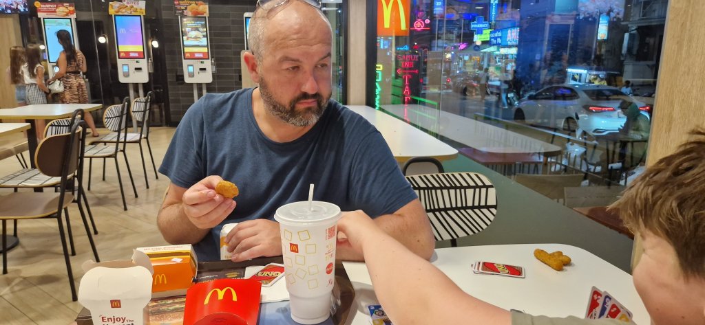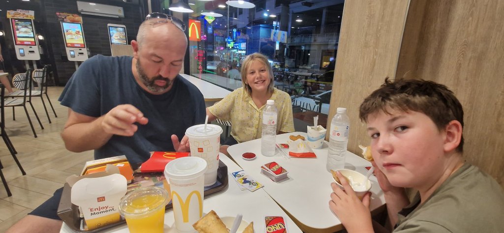 Kvelds på McDonalds her i Chaweng sentrum, som er nær hotellet. God premie etter en lang kjøretur.