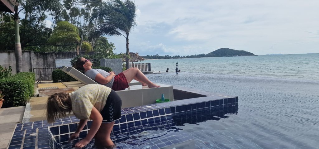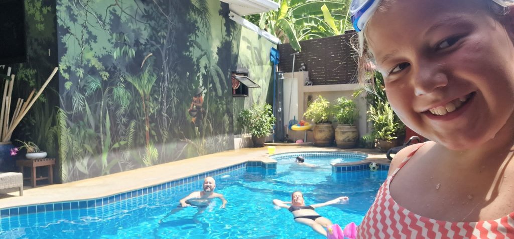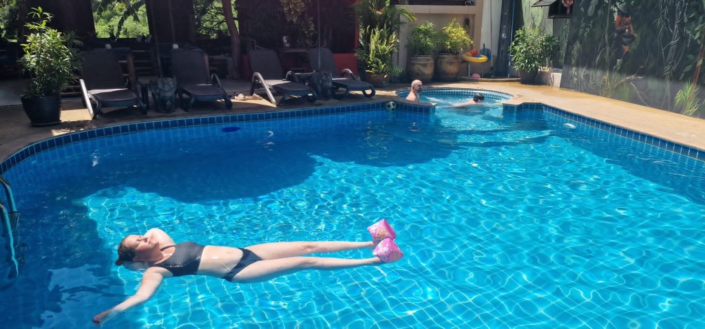 Startet dagen med å gå rett fra frokostbordet til bassenget for et par timer med lek og soling.