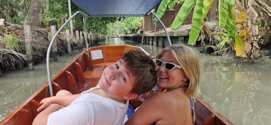 På kjøreturen tilbake til Bangkok havnet vi i en del kø, så det tok nesten to timer. Utrolig nok var humøret i baksetet fint hele veien hjem.
