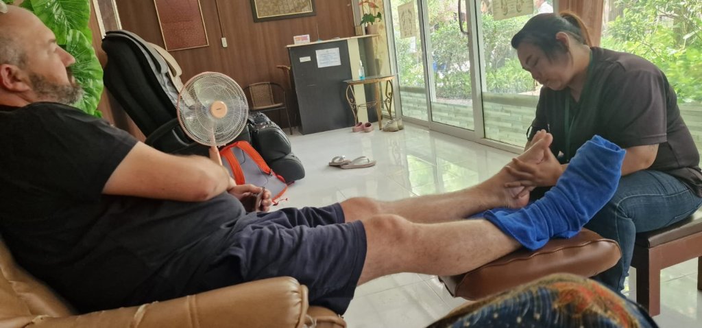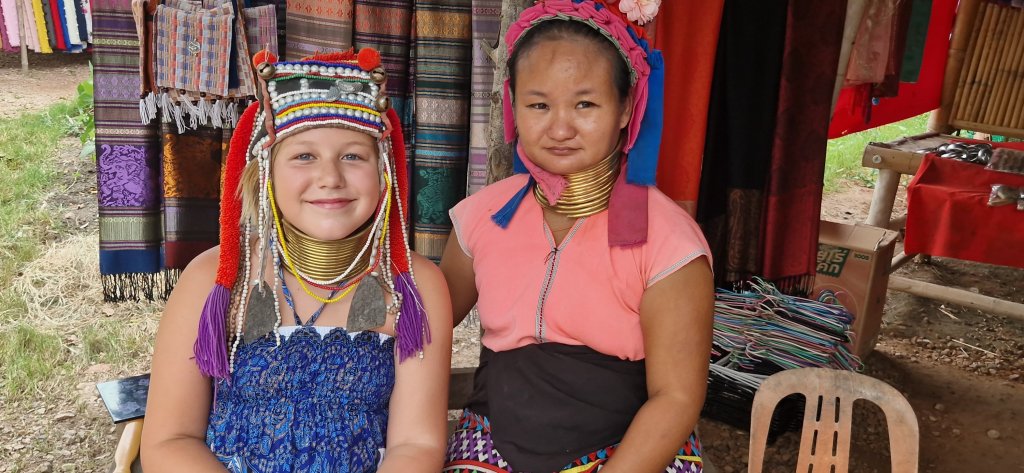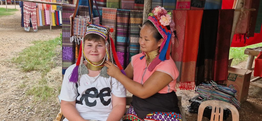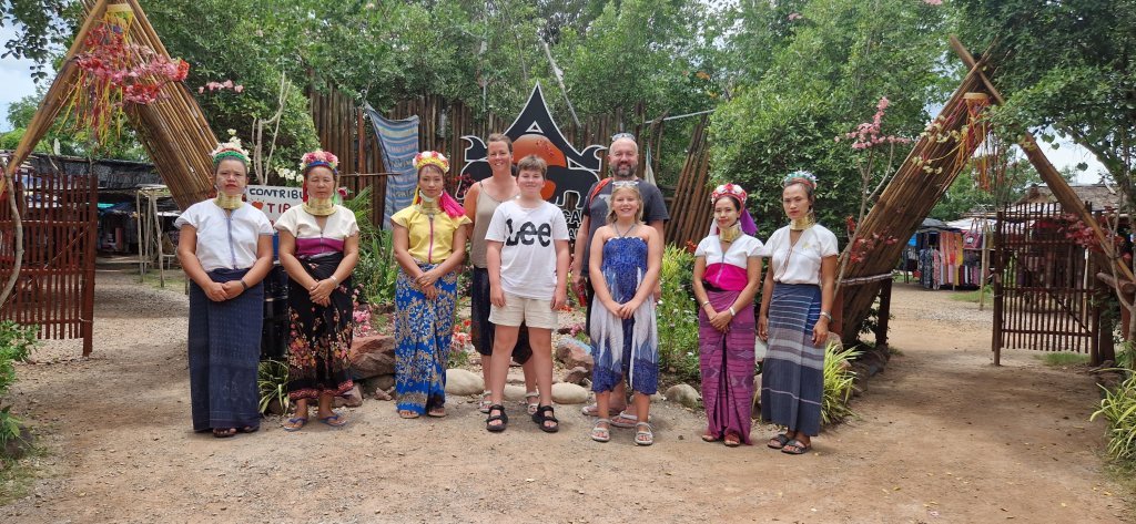 Vi stoppet ett sted som het elefantparken, hvor vi fikk fotmassasje og en tur innom langhals-folk.