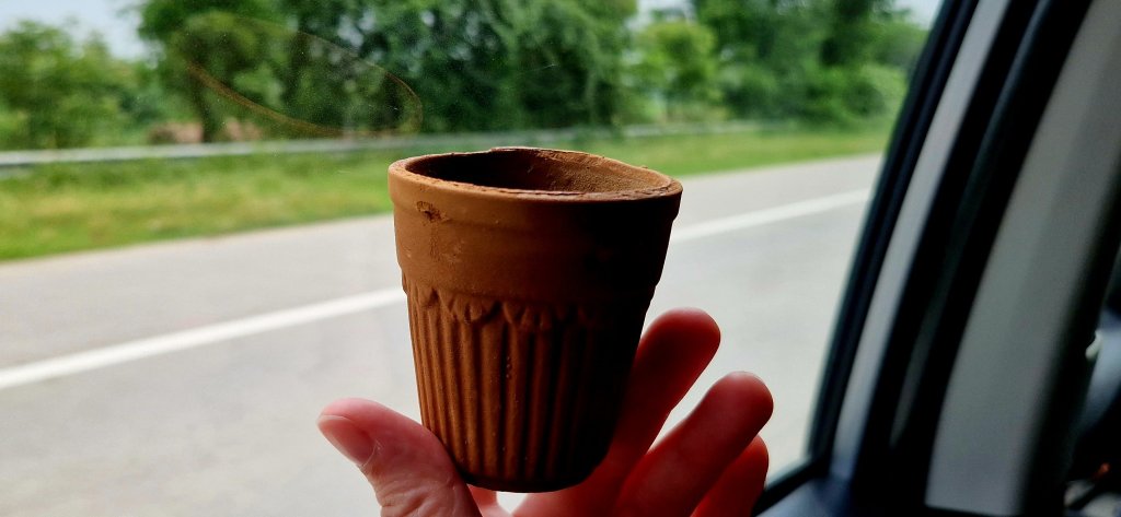 – Rakesh svingte innom en pauseplass langs veien, hvor «the locals» stopper (ikke der det var Starbucks og Burger King) og der kjøpte han en kopp te til oss. Nydelig «Masala Te» som fikk Mia til å tenke på mormorgrøt med kanel.