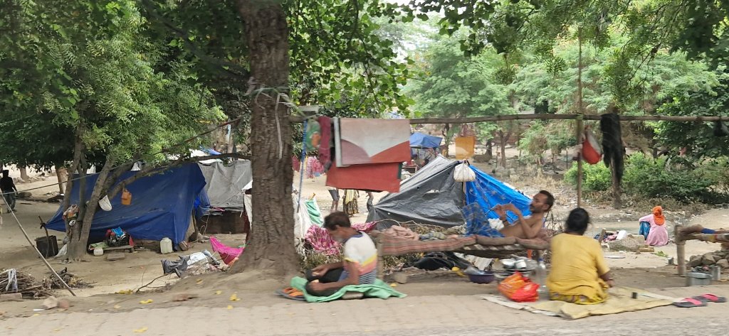 Kjøre forbi slummen i Agra. Vi lærte at regjeringen har mange gode tiltak for å få folk ut av slummen, men det er overraskende få som faktisk ønsker å flytte.