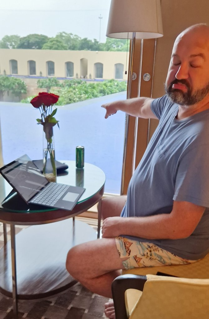 På grunn av tordenvær gikk strømmen i deler av byen. (Ikke på vårt hotell, for det er 100% solcelledrevet..)
