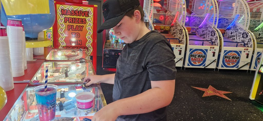 Inne på arcades er det mer plingeling enn et vanlig norsk mammahode kan orke, dagen etter en lang flytur og lite søvn… Heldigvis var tre besteforeldre med, som er oppvokst med denne type fornøyelsespark og plingplong.