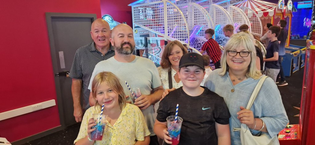 Å være på arcades, og å tilbringe dagen sammen med alle tre grandparents!
